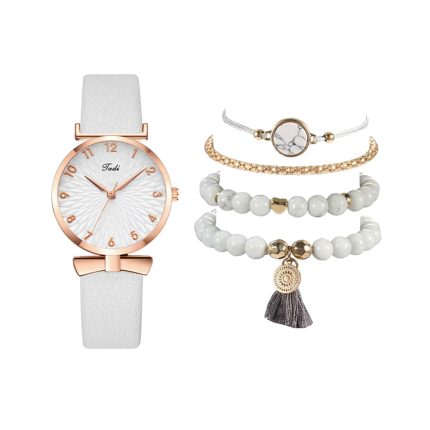 Pearl Horizon Elegant White Watch & bracelet Set